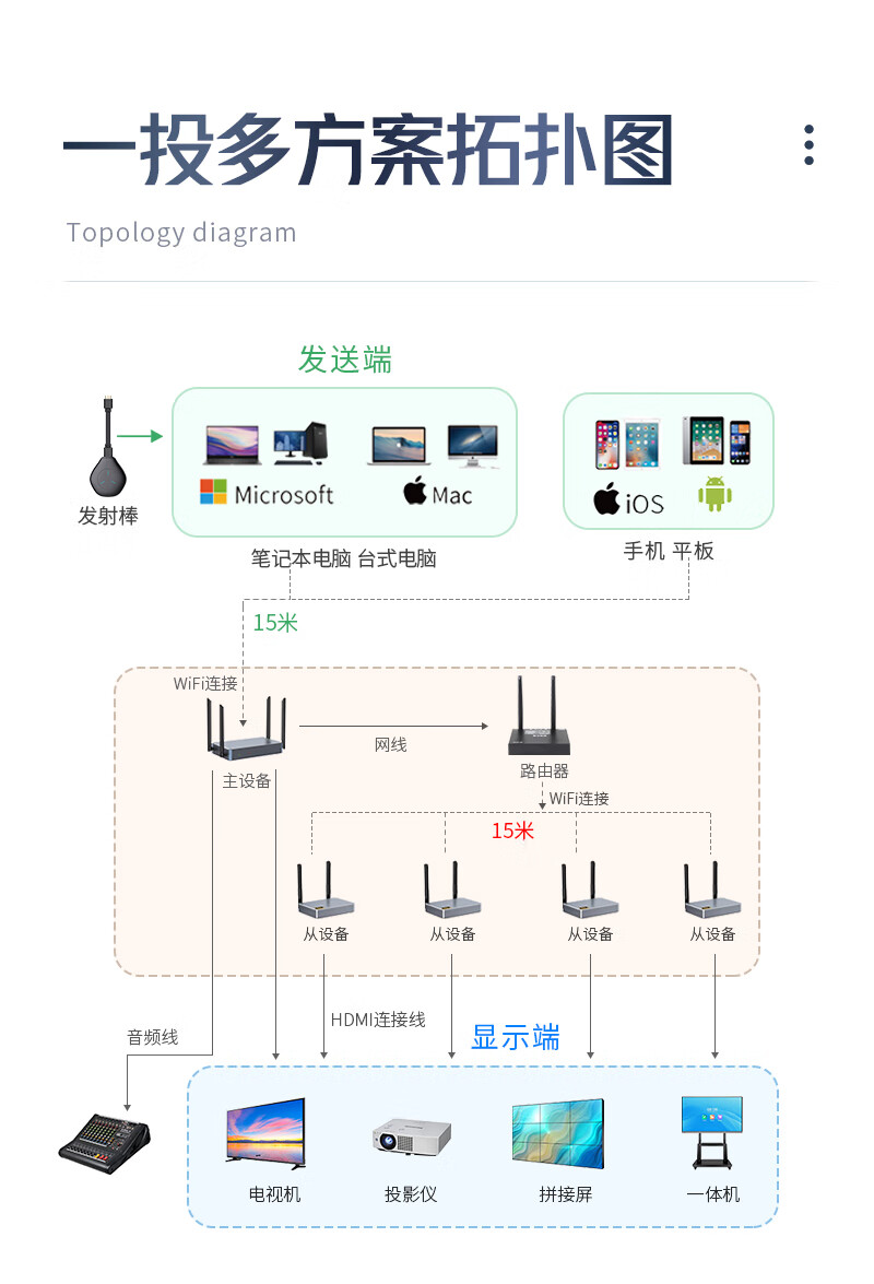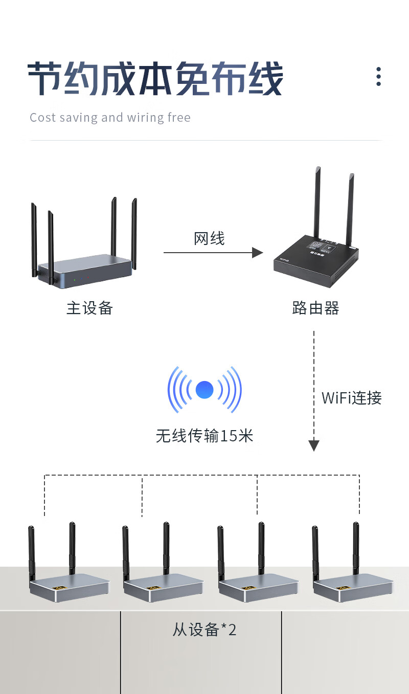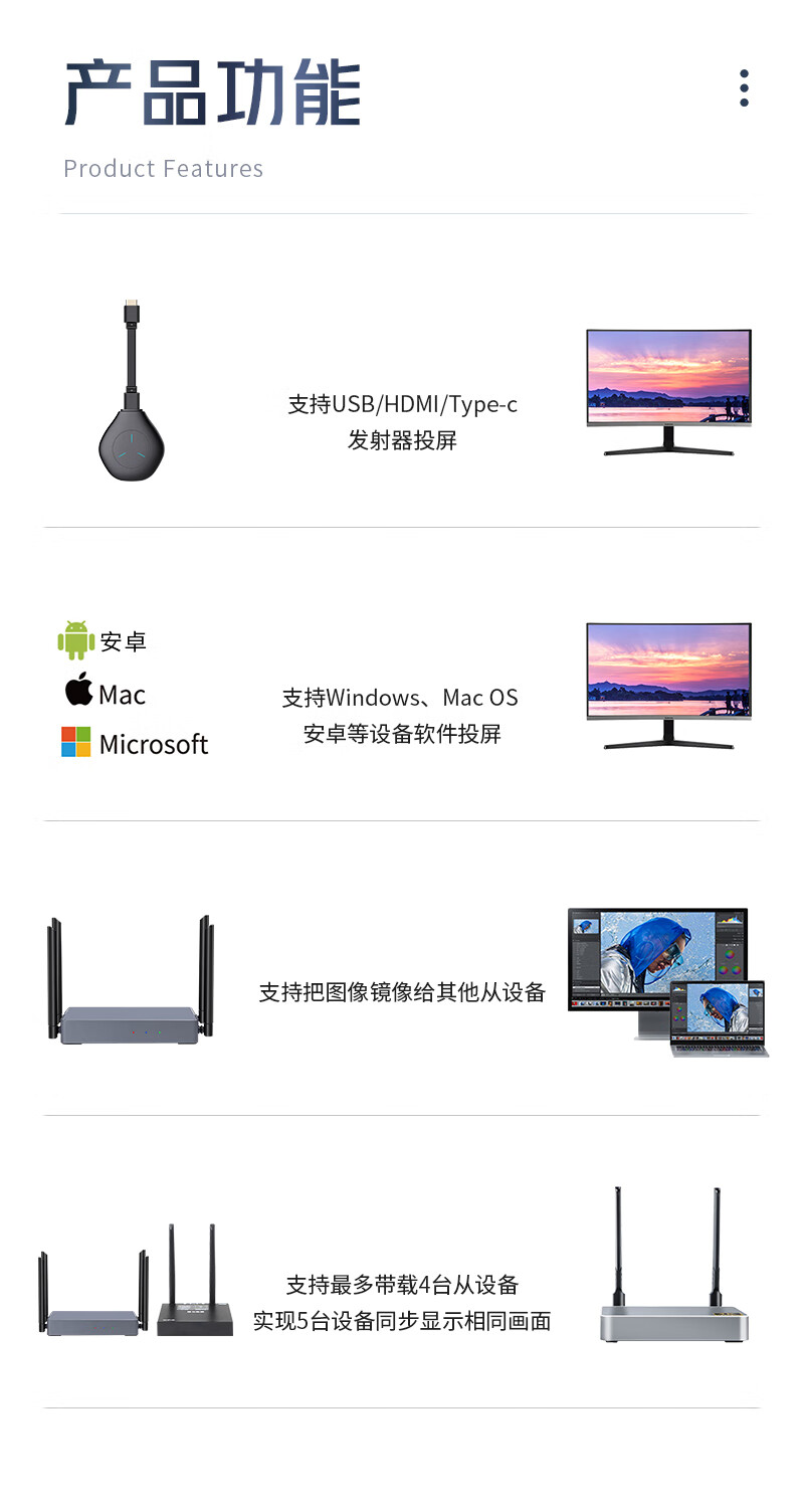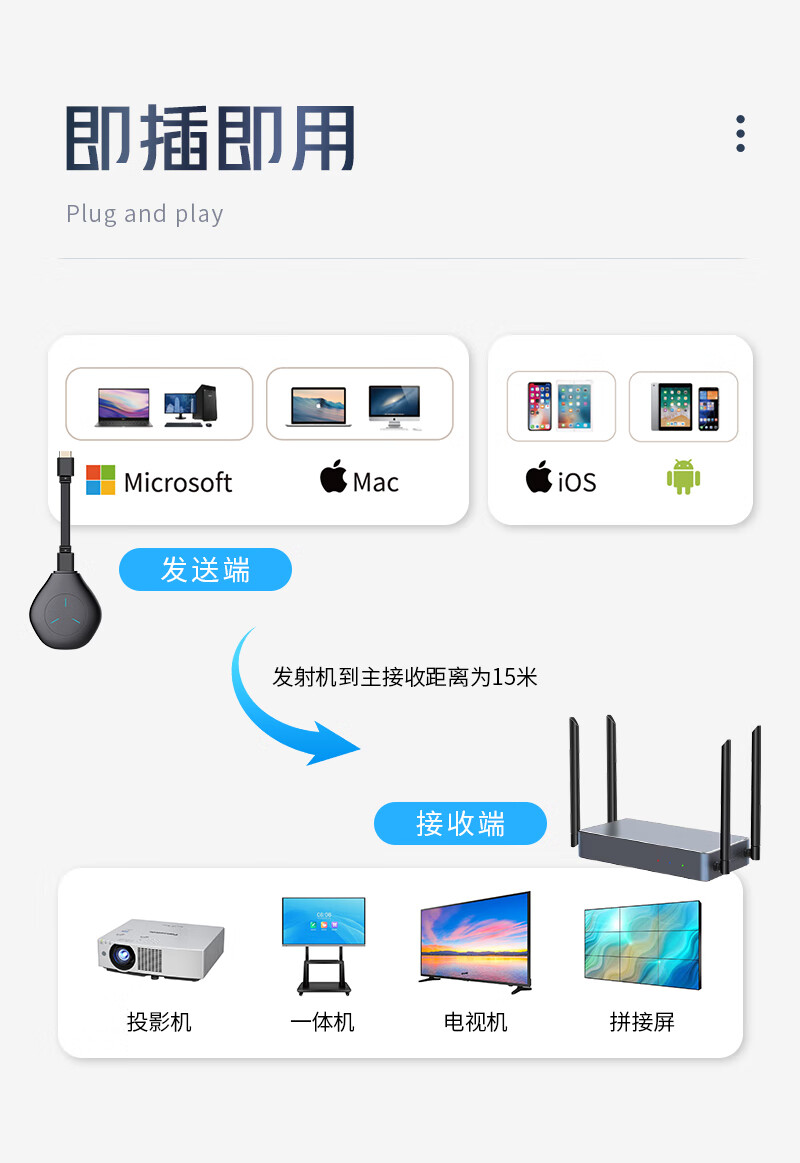 也仁 企业级无线投屏器 无线一分三传输器 无线一拖三同屏器 一发三收投屏系统 HDMI发射器 YR-C03H