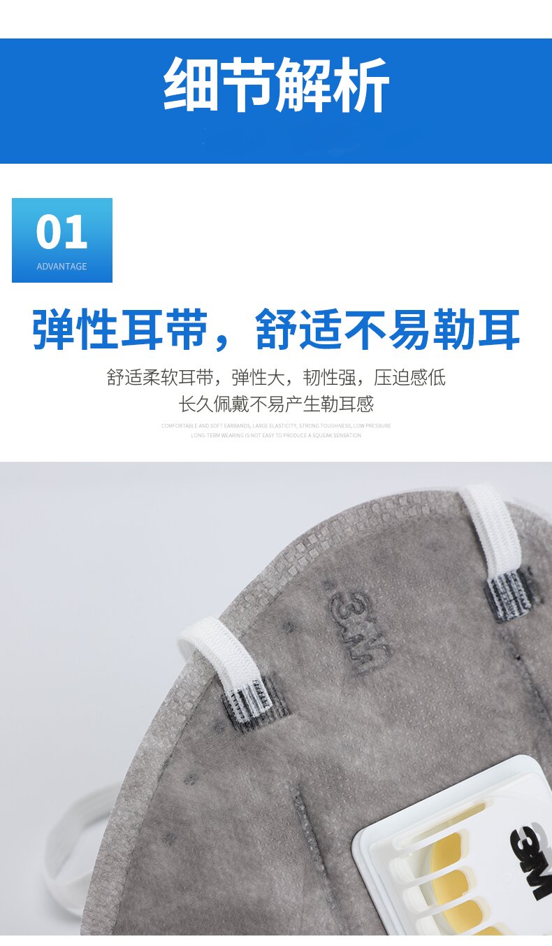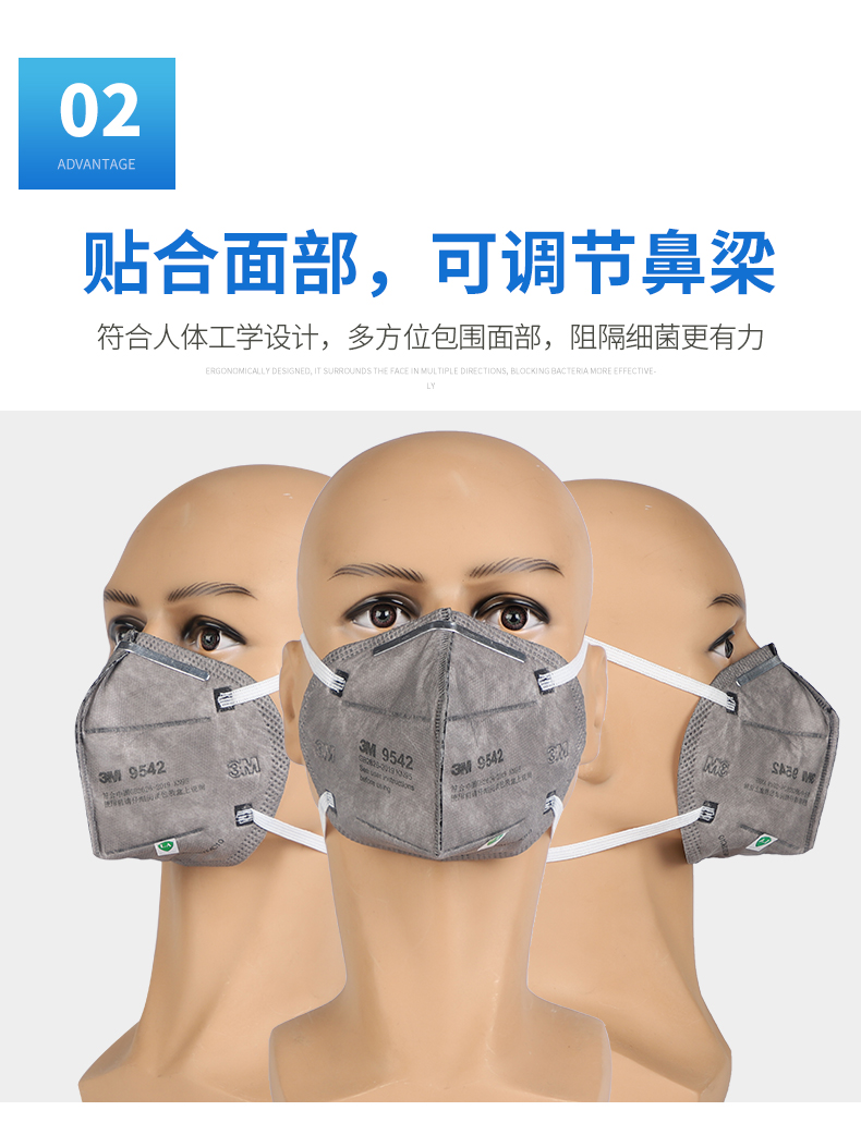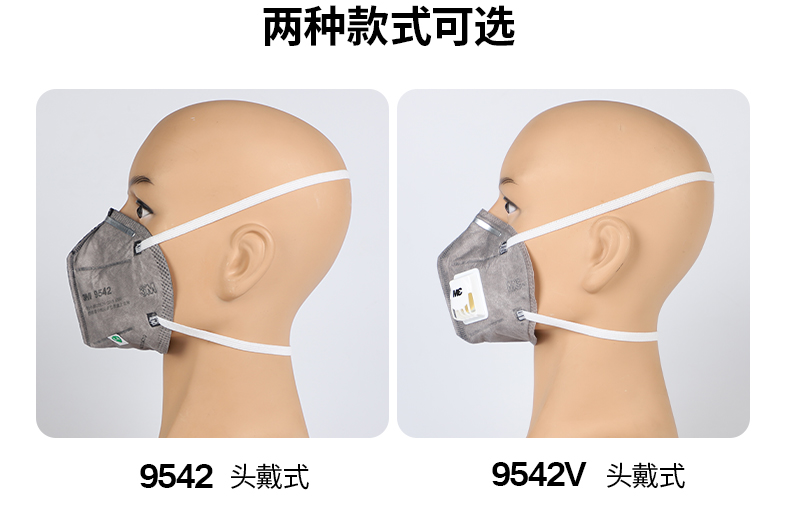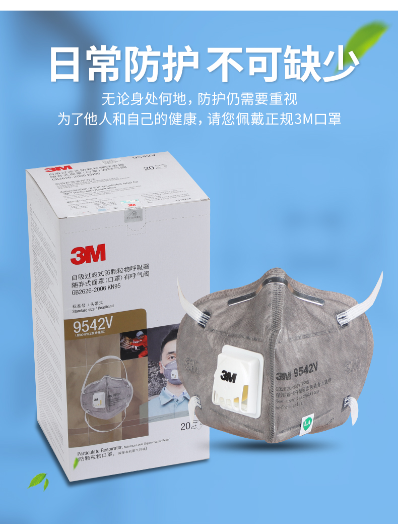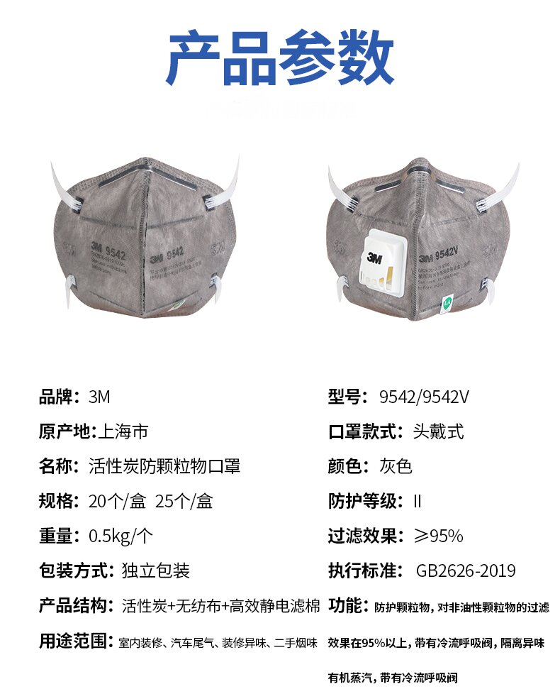 3M 9542V活性炭口罩防尘除异味喷漆带呼吸阀头戴式 独立装 1盒/20个