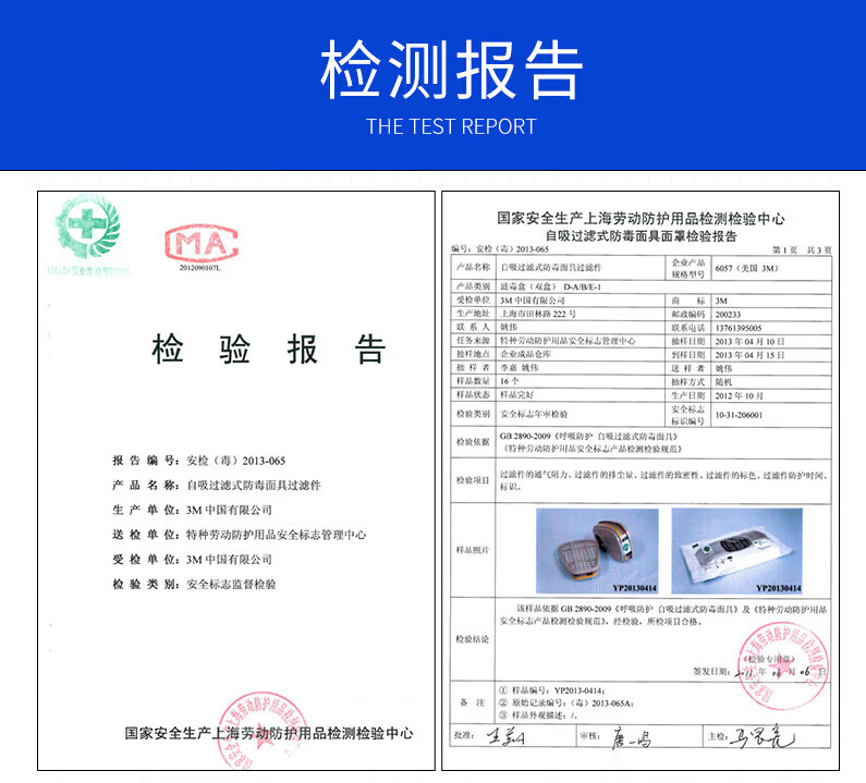 1 品牌为3M,型号6057CN,采用双罐活性炭结构,可有效防护有机蒸汽、氯气、氯化氢、二氧化硫、氰化氢、硫化氢等多种有毒气体
