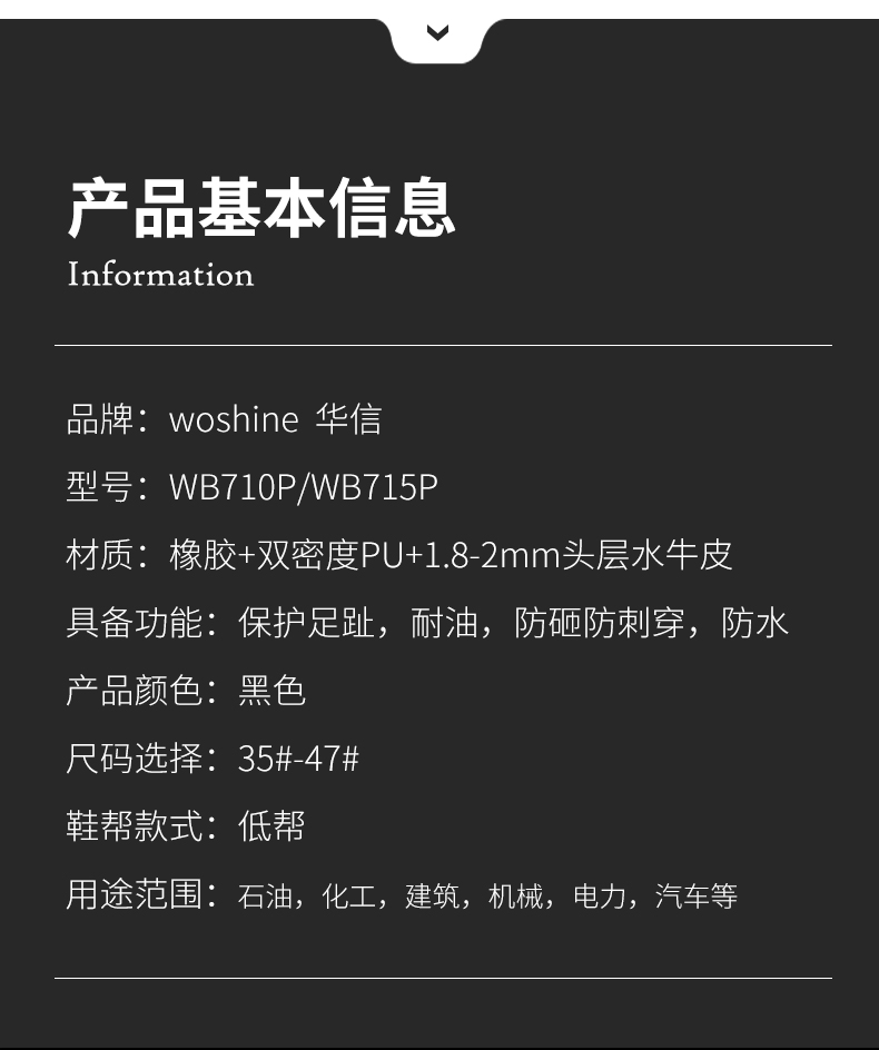 华信吉豹 WB710P 低帮防砸防刺穿安全鞋双密度PU舒适大底耐油耐磨劳保鞋 38-45码 1双/盒