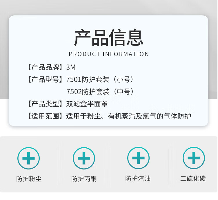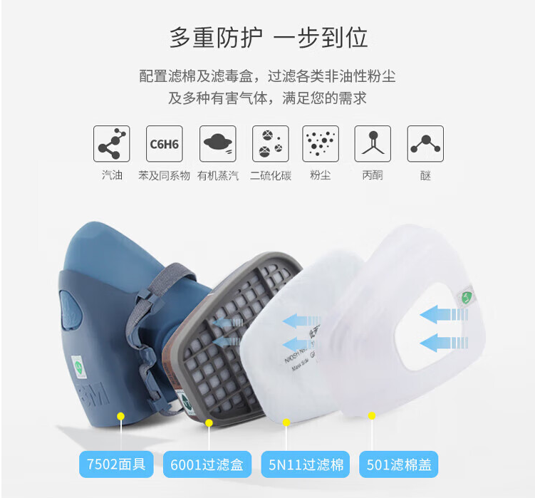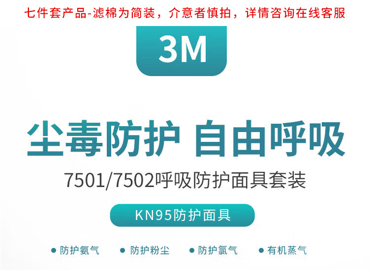 3M7502+2091硅胶防护面罩三件套防电焊油烟有机玻璃纤维粉尘各类颗粒物 1套(三件套)