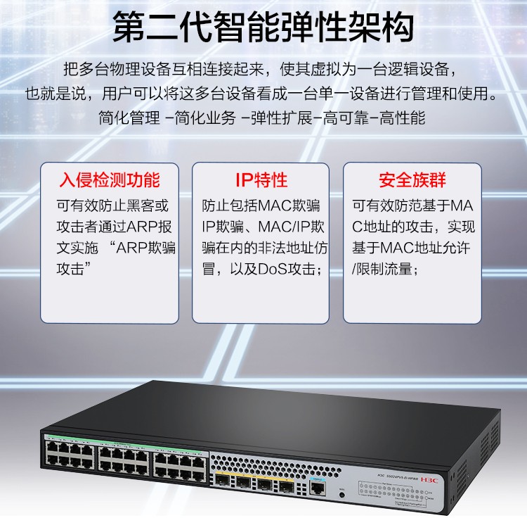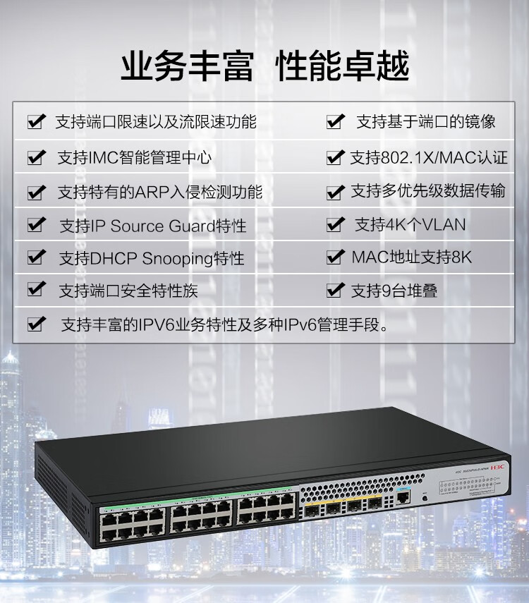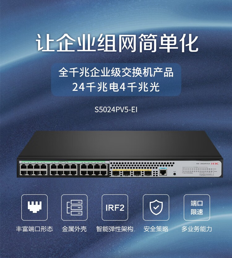 华三(H3C)企业级核心全千兆网管型交换机二层光纤Web管理交换器 S5024PV5-EI-PWR 24口千兆POE 网络交换器办公组网分线器分流器Vlan端口限速