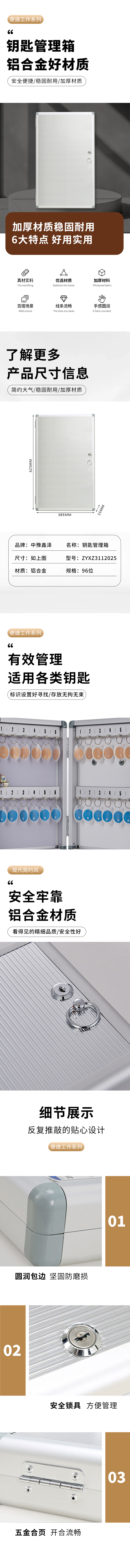 细节优化:箱体边缘圆润包边处理,有效防止使用时被刮伤;配备安全锁具,保障钥匙存放安全;五金合页结构,开合流畅无卡顿