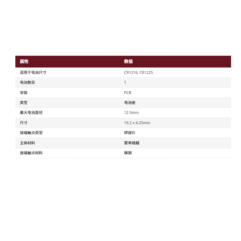 4 精准尺寸:外形尺寸为19.2×4.25mm,适配12.5mm直径电池,结构紧凑节省PCB空间