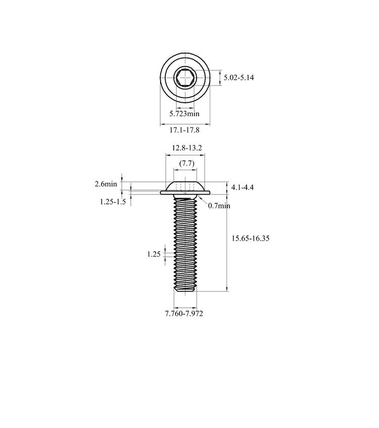 3 内六角平圆头带垫一体化设计:平圆头造型美观且减少突出干涉,自带垫圈可增大受力面积,有效防止松动和损伤被连接表面
