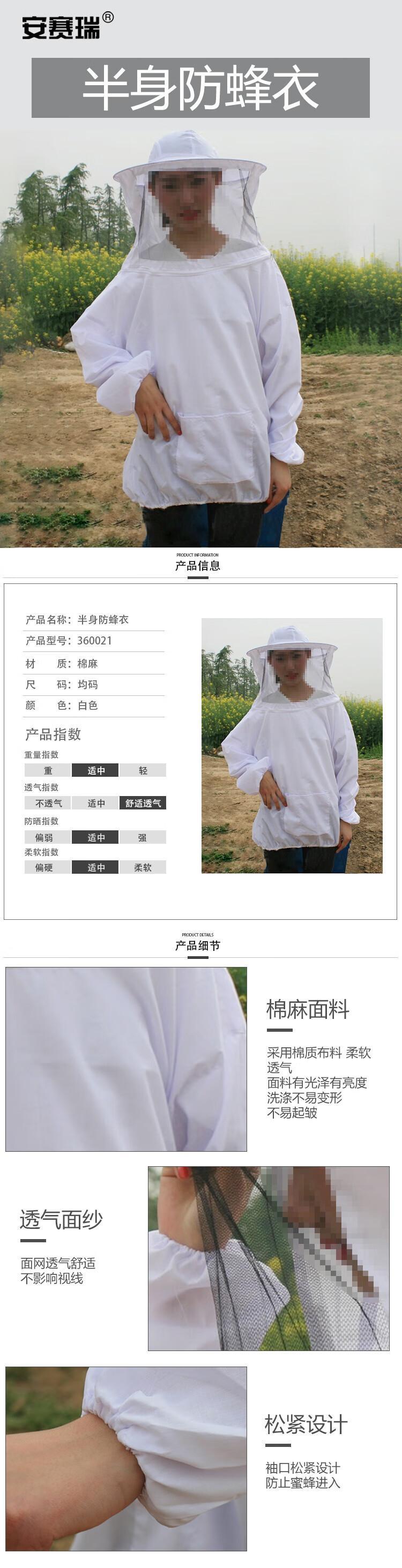 安赛瑞 透气全套防蜂服 半身防蜂衣防护服防蜇防蚊虫叮咬衣服防晒保护服 均码 白色 360021