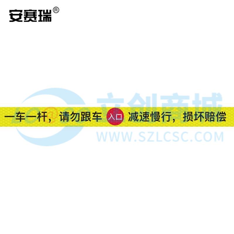 安赛瑞 通道杆标志牌 道闸反光贴纸 10x120cm 入口 一车一杆请勿跟车 黄色 311065