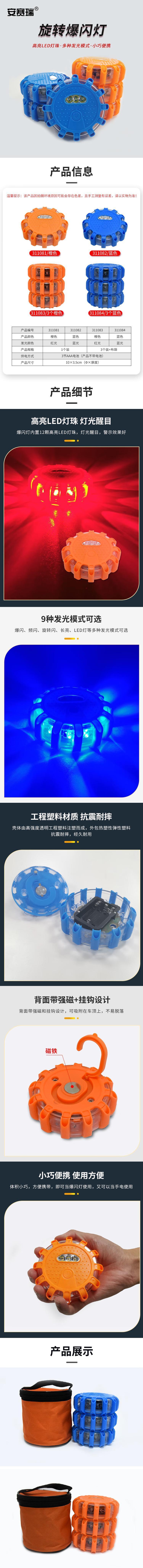 安赛瑞 旋转爆闪灯 应急灯 路障警示灯 LED交通警示灯 橙色 红光 311081