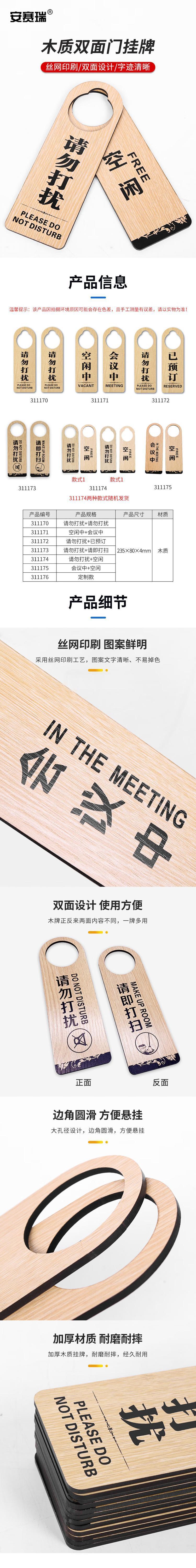 安赛瑞 木质双面门挂牌 请勿打扰 空闲 酒店宾馆标志提示吊牌门挂牌 311174