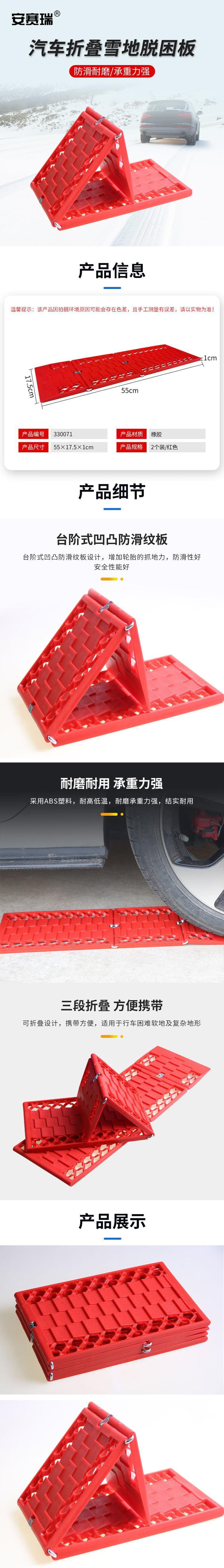 安赛瑞 汽车轮胎防滑板脱困板自救神器雪地泥地沙地用品 折叠陷车脱困装备红色 330071