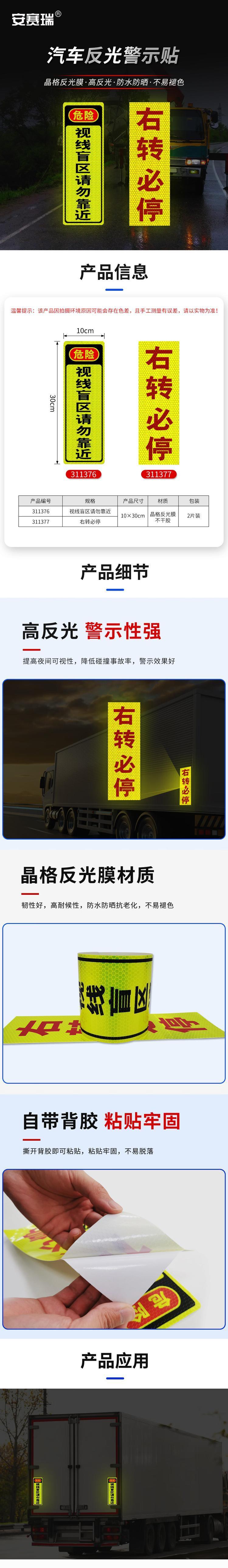2片装,满足车辆多个盲区位置的提示需求