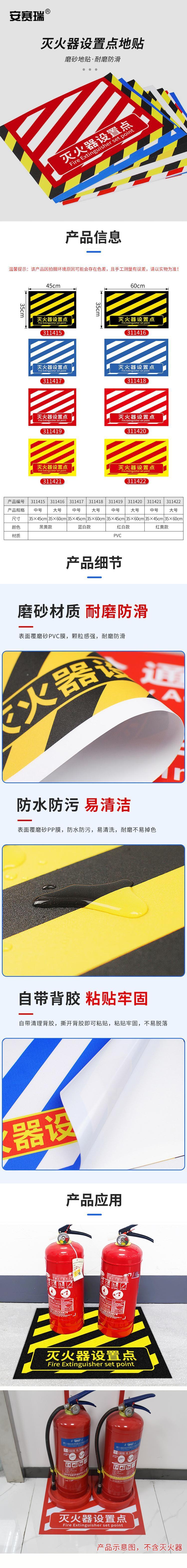 适用于工厂车间、办公楼走廊、商场公共区域、仓库存储区、医院通道、学校教学楼等各类需要规范放置灭火器的场所,可作为地面定位标识,引导人员快速找到灭火器位置,助力消防应急管理
