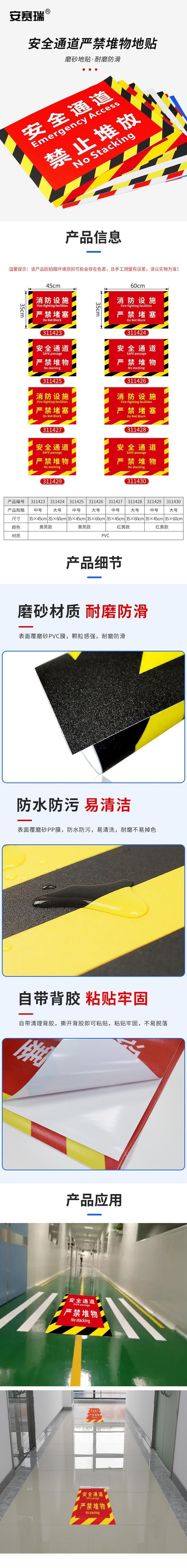 黄黑配色醒目,搭配清晰的“安全通道严禁堆物”文字及警示图案,提示效果直观
