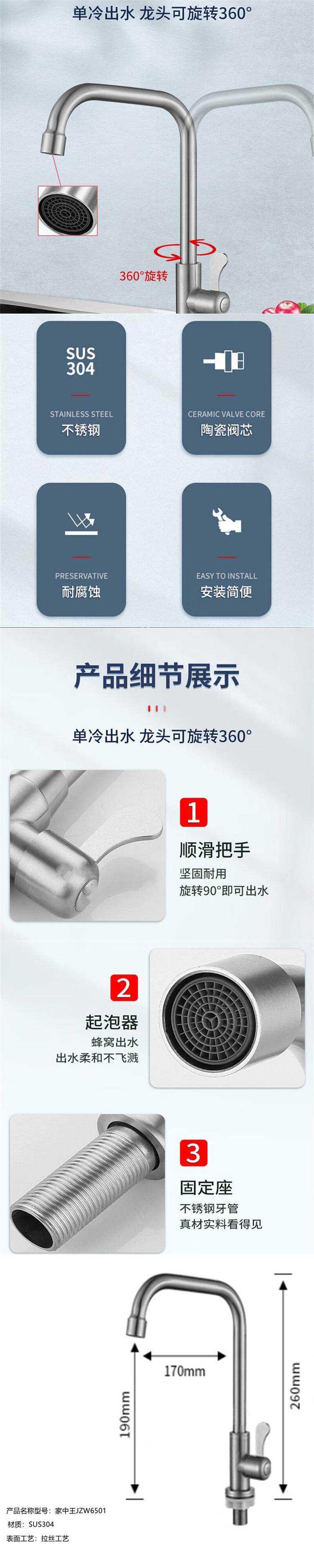 家中王洗菜盆水龙头单冷高脚不锈钢厨房水槽家用洗碗洗衣池万向水龙头