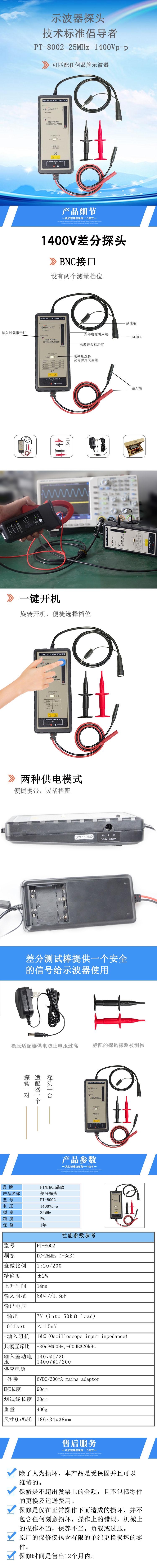 Pintech品致示波器差分探头PT-8002(DC-25MHz 1400Vp-p)