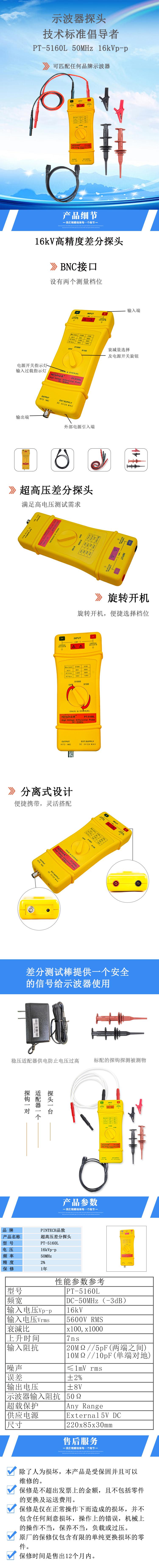 Pintech品致高灵敏度高压差分探头PT-5160L(DC-50MHz 16kVp-p)