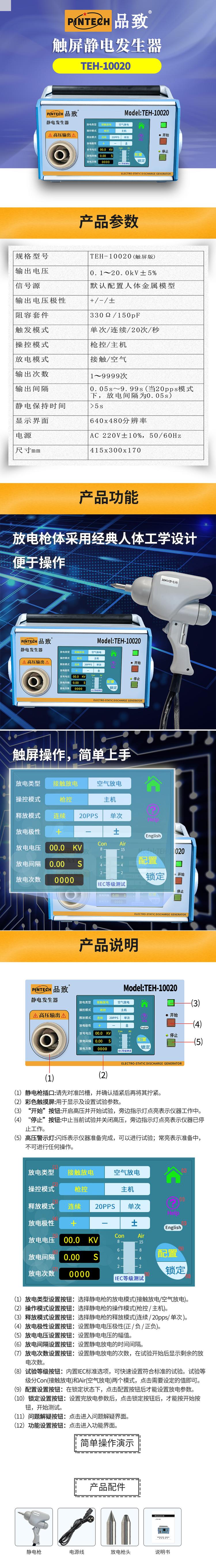 Pintech品致高压静电放电发生器20kV触屏款TEH-10020带静电枪