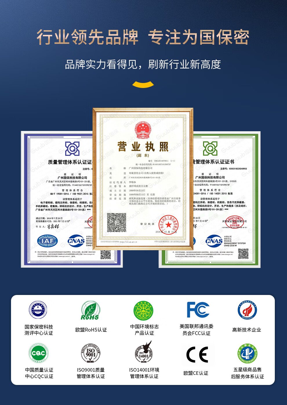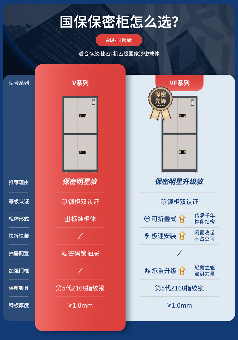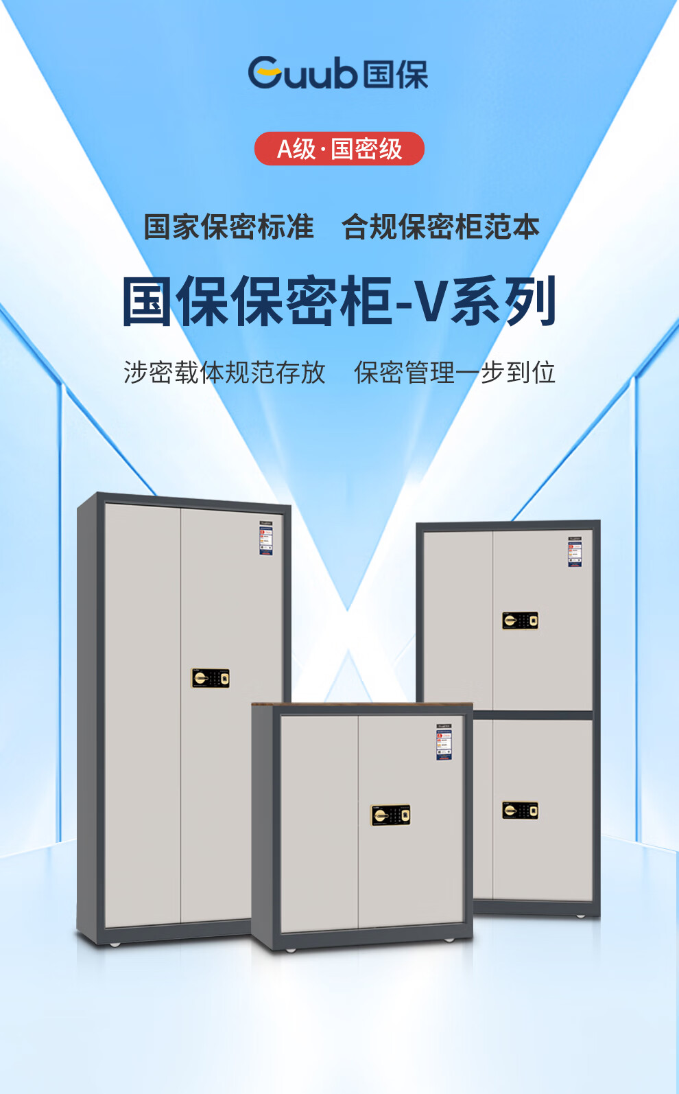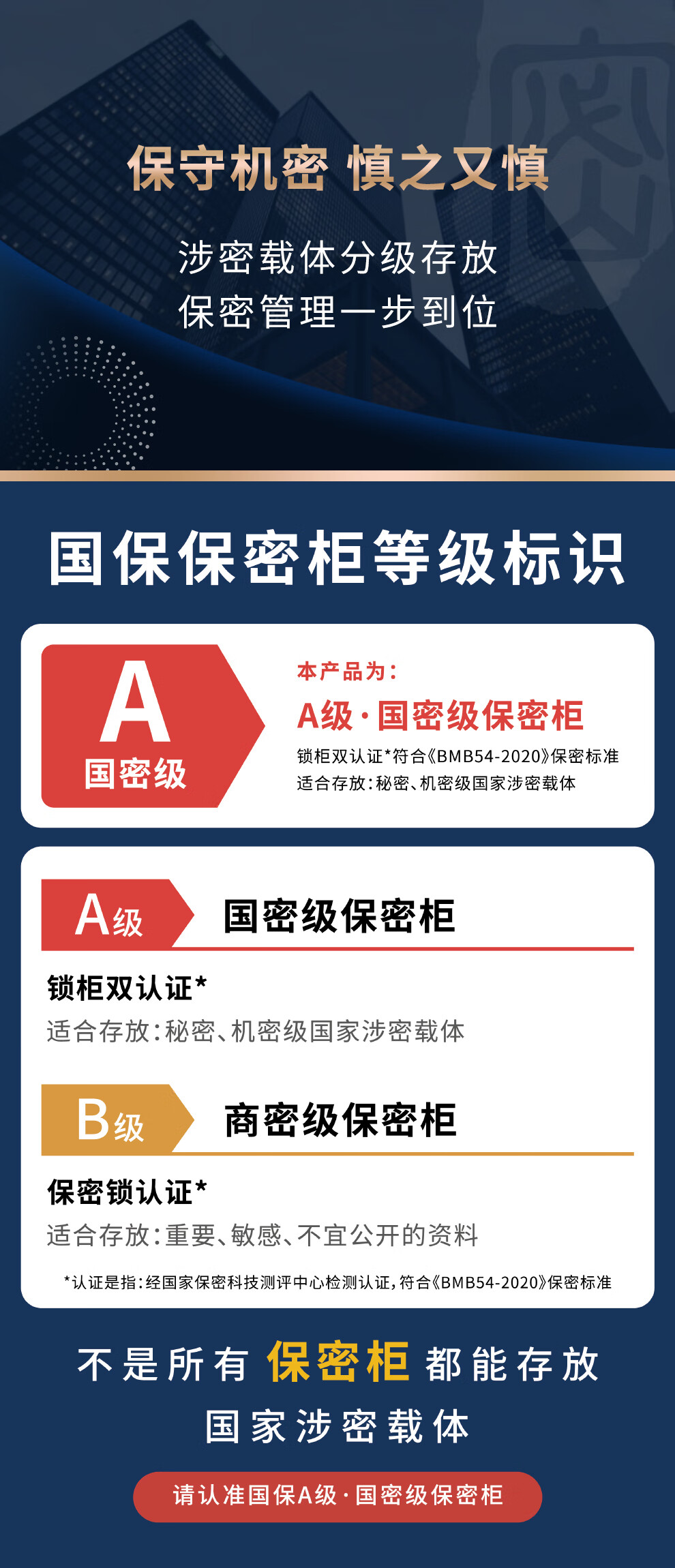 国密级认证:A级·国密级保密柜,锁柜双认证,符合《BMB54-2020》保密标准,可存放秘密、机密级涉密载体