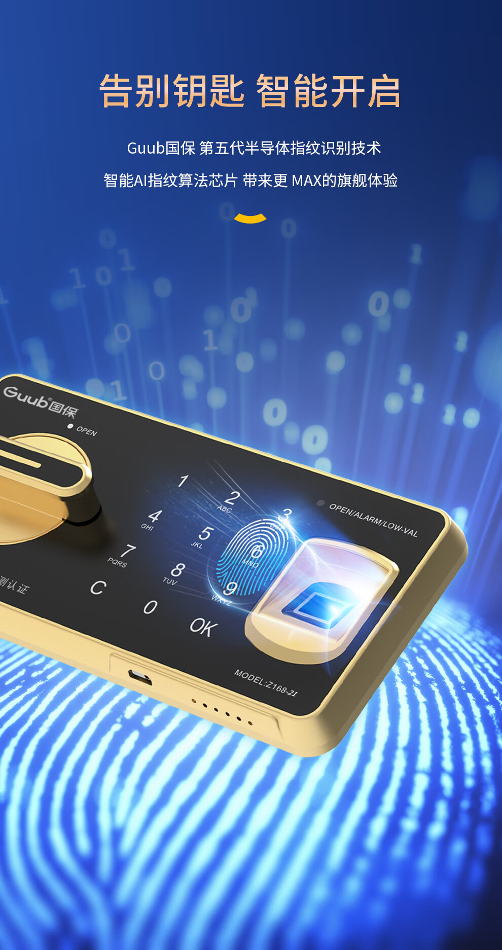 六种安全报警:支持撞击震动、错码3次、错误审计码、错误指纹3次、超时未上锁、缺电提示报警,严密防控安全隐患