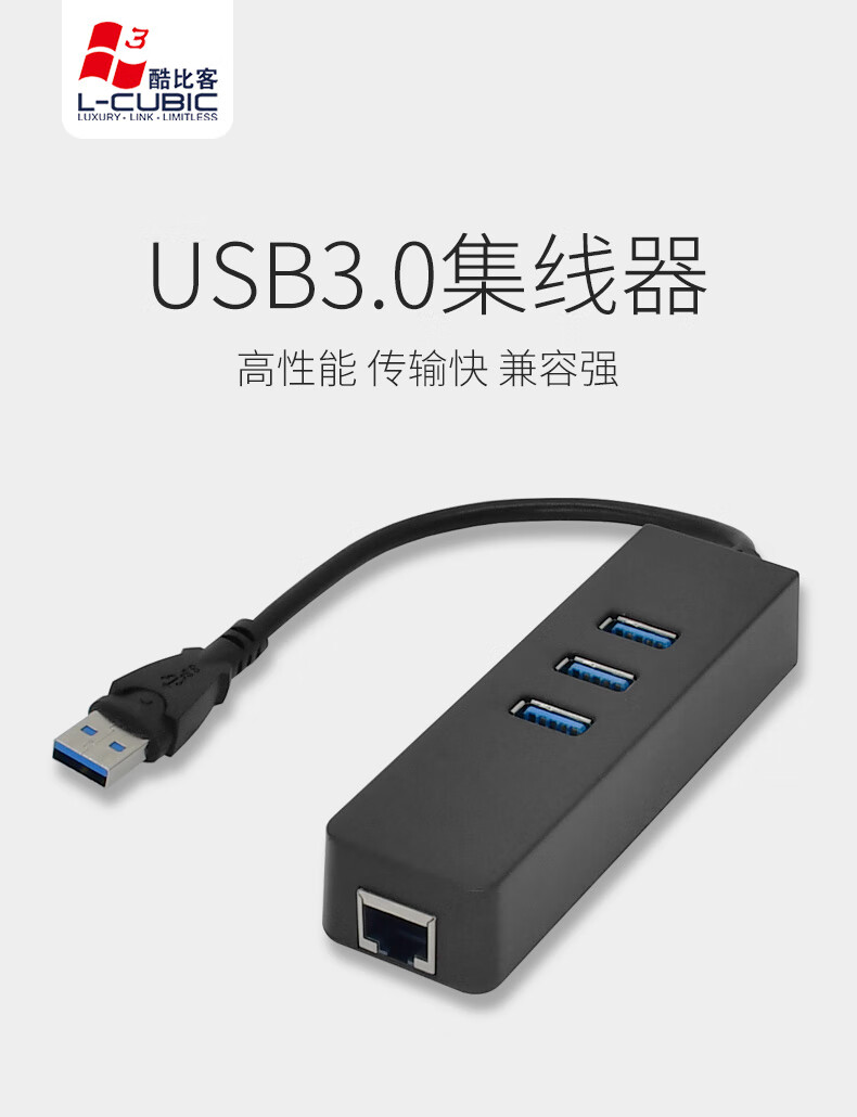 酷比客 LCCPU33L 3口 带网卡 USB分线器 黑色 (个)