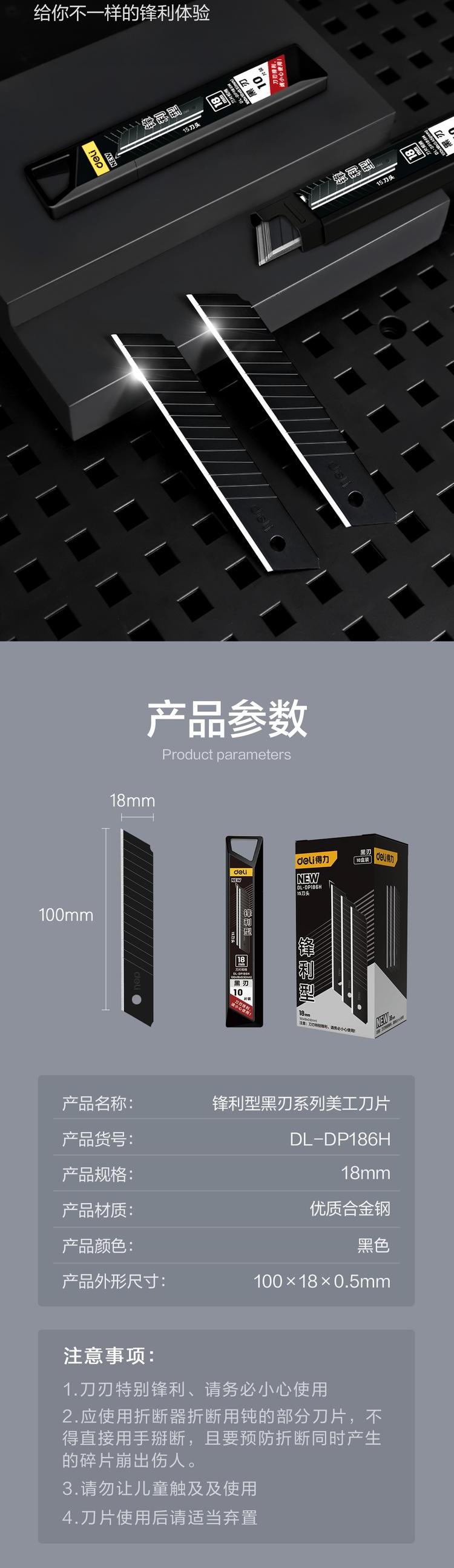 deli得力DL-DP186H锋利型黑刃美工刀片18mm厚0.5(黑(盒