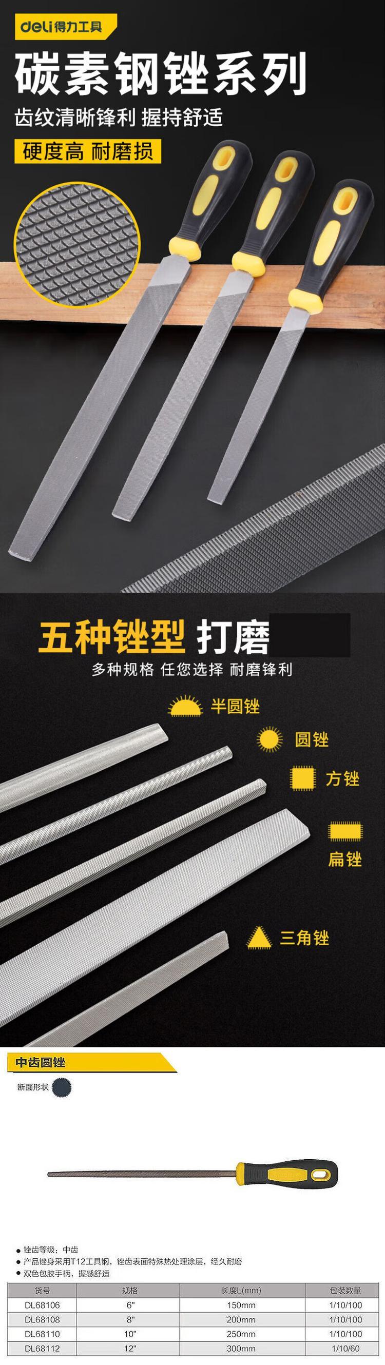 deli得力DL68110中齿圆锉10寸(黄)(把)