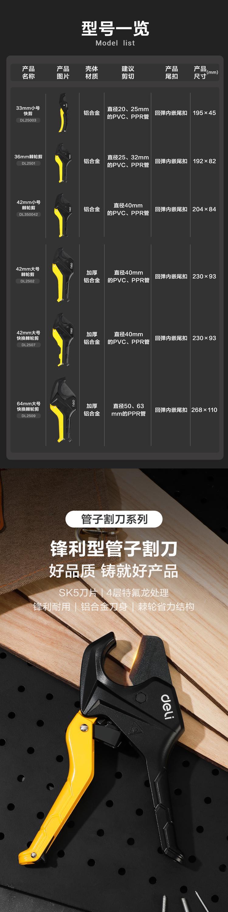 deli得力DL25003锋利型管子割刀33mm铝合金快剪(黄)(把)