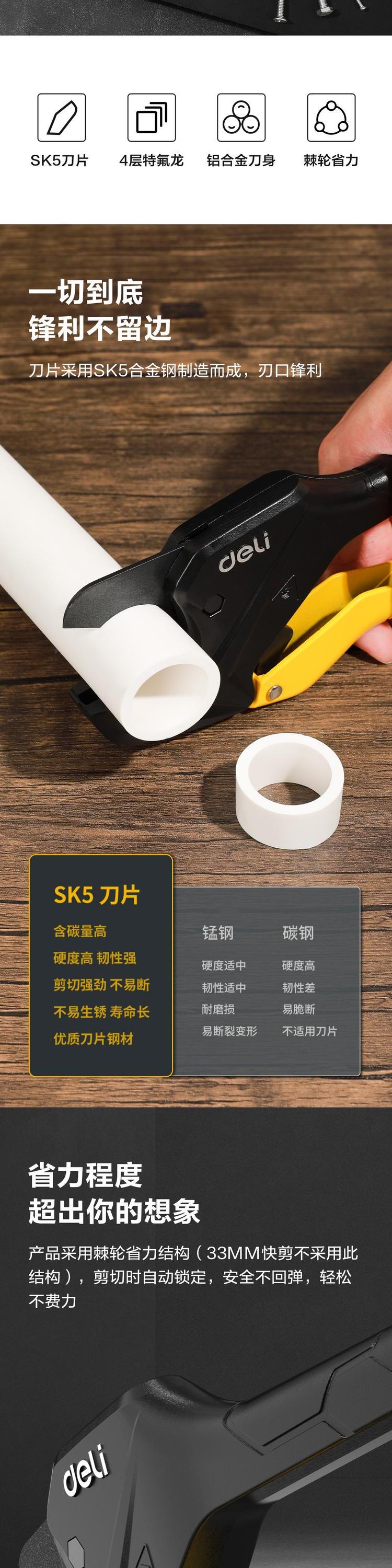 deli得力DL2507锋利型管子割刀42mm大号快换刀片棘轮省力(黄)(把)