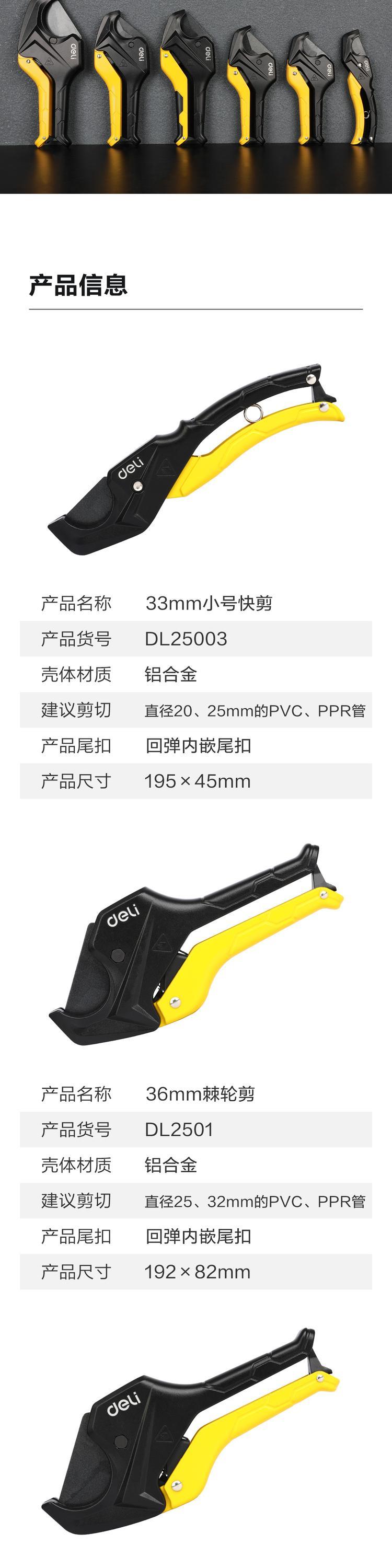 deli得力DL350042锋利型管子割刀42mm小号棘轮省力(黄)(把)
