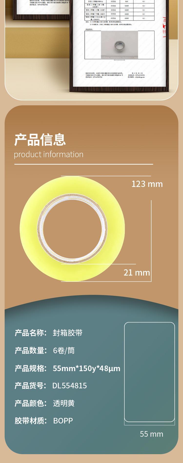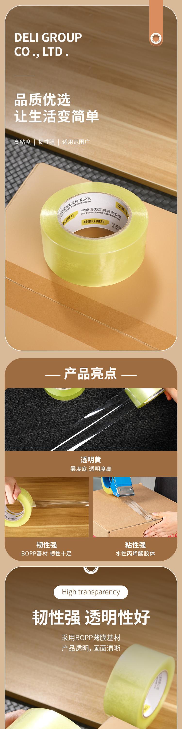 deli得力DL554815封箱胶带55mm×150y×48μm透明黄(6卷/筒