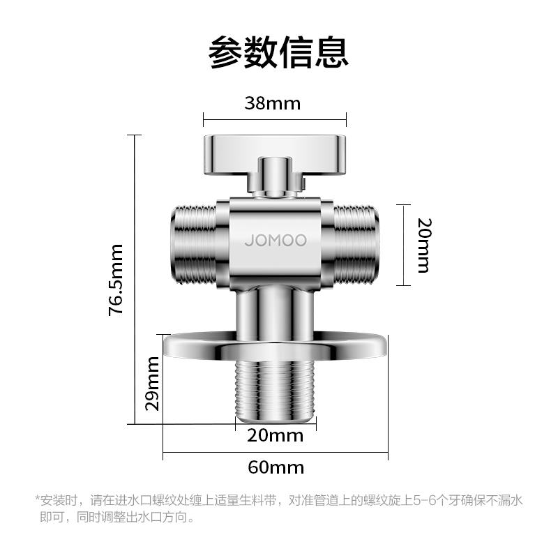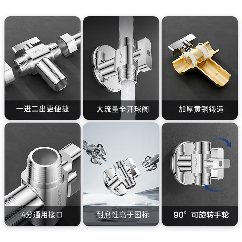 一进二出设计:单进水口可分流至两个出水口,满足多设备同时用水需求,安装便捷减少管道改造步骤