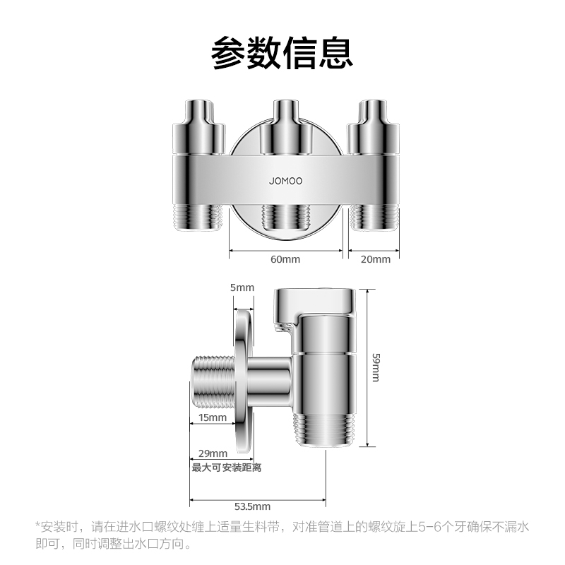 进水口螺纹处需缠绕适量生料带(约10-15圈),对准管路螺纹旋入5-6个牙确保密封不漏水