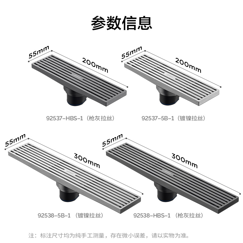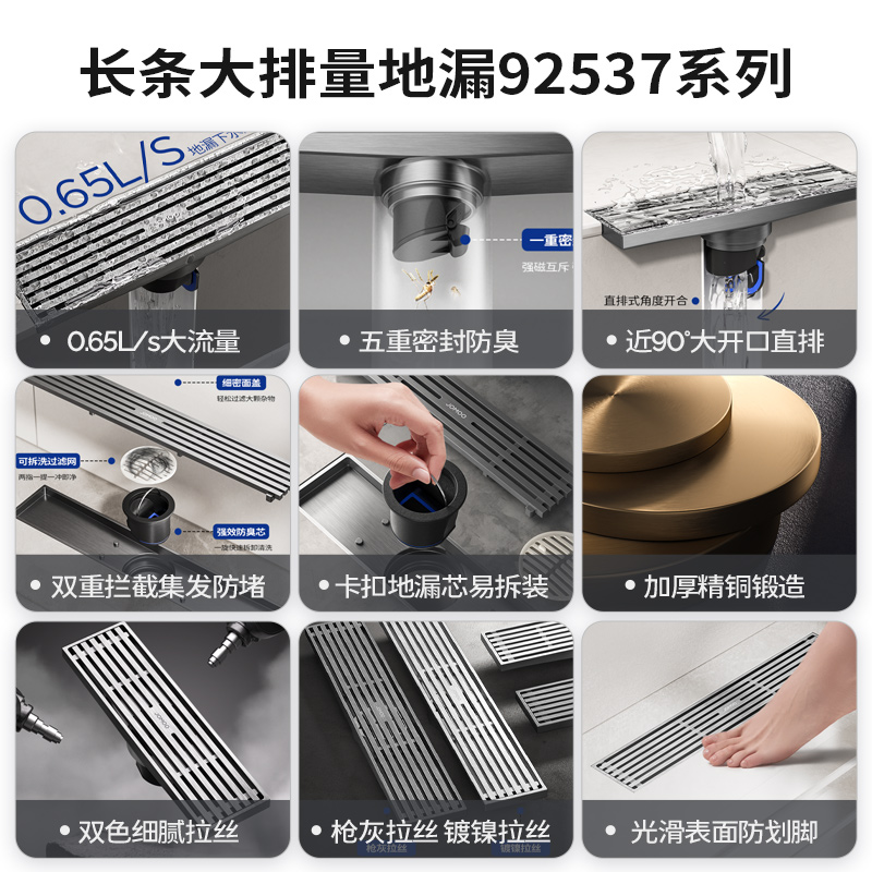 JOMOO九牧 优质铜合金大排量防臭防虫长条地漏92538枪灰色[300*55mm]