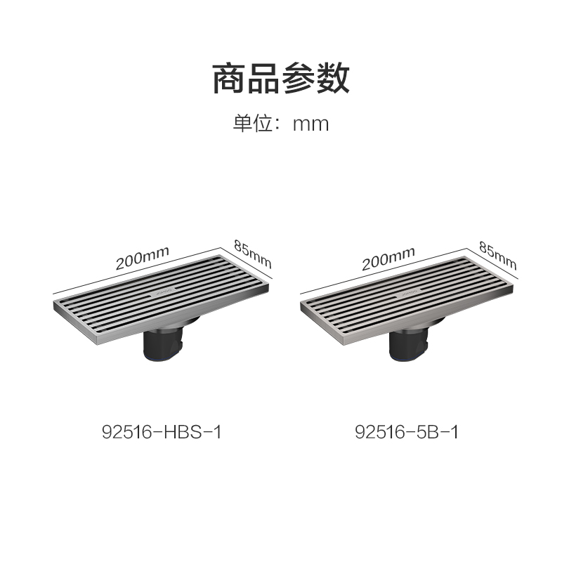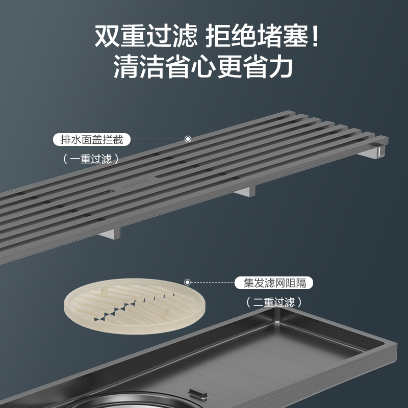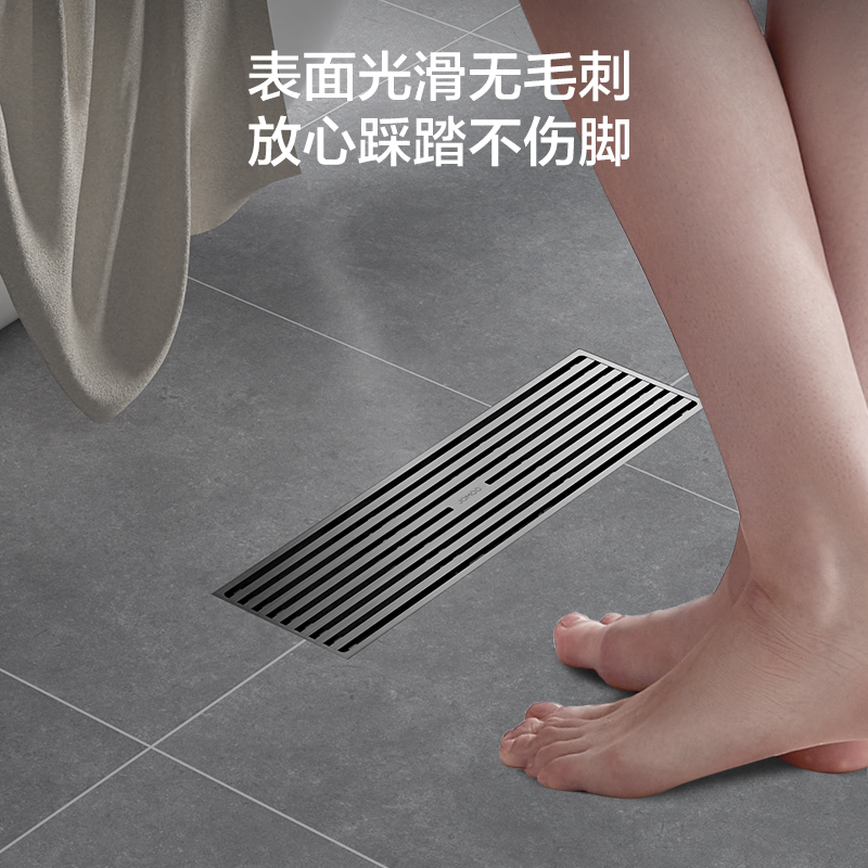 JOMOO九牧铜合金大流量磁推防臭过滤长条地漏镍拉丝92516[200*85mm]