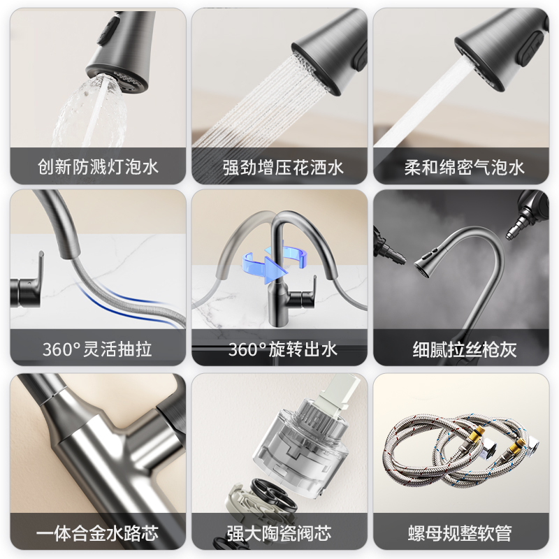 JOMOO九牧 7字形双水花可旋转健康水路厨房龙头33186银色