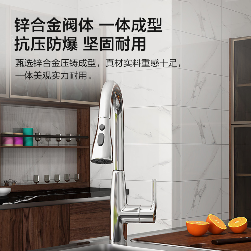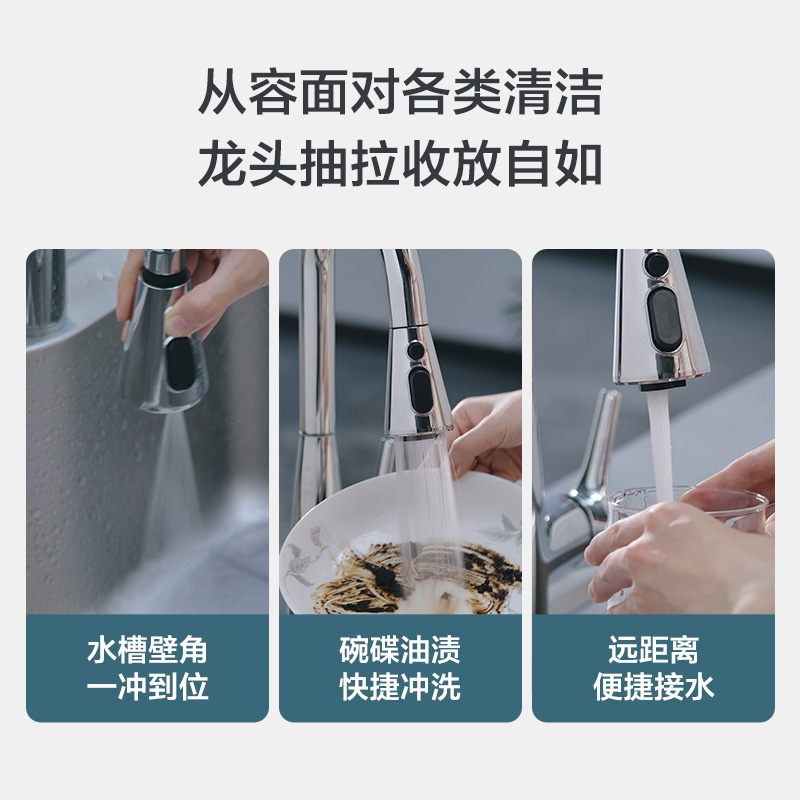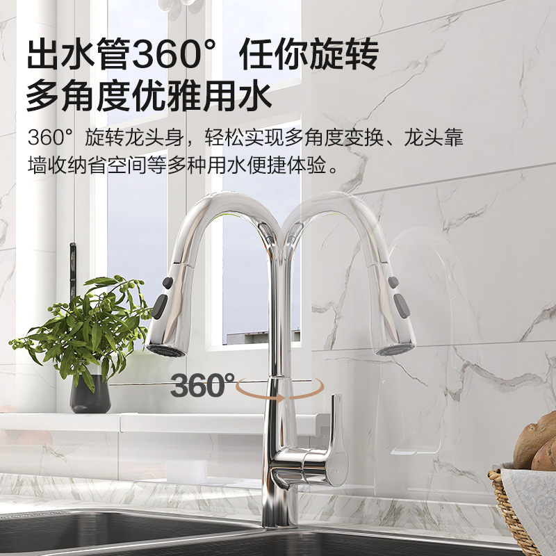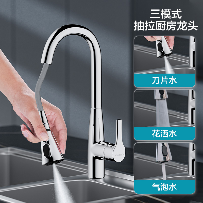 JOMOO九牧 360°可旋转数显抽拉三出水厨房龙头 33098经典银1B1款[无抽拉悬停] [带两根软管]
