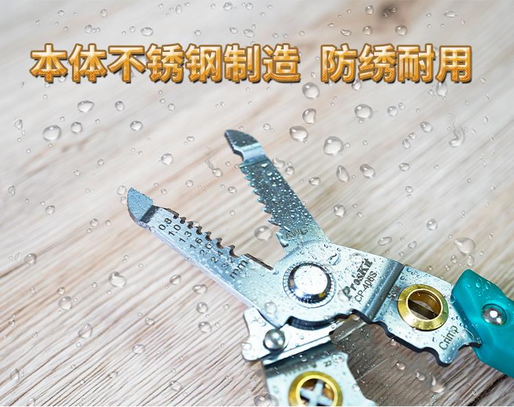 剥线范围覆盖φ0.8/1.0/1.3/1.6/2.0/2.4/3.2mm及AWG 20/18/16/14/12/11/8规格,七个精准剥线孔位,开孔精准,剥线刃口锋利,避免损伤线芯