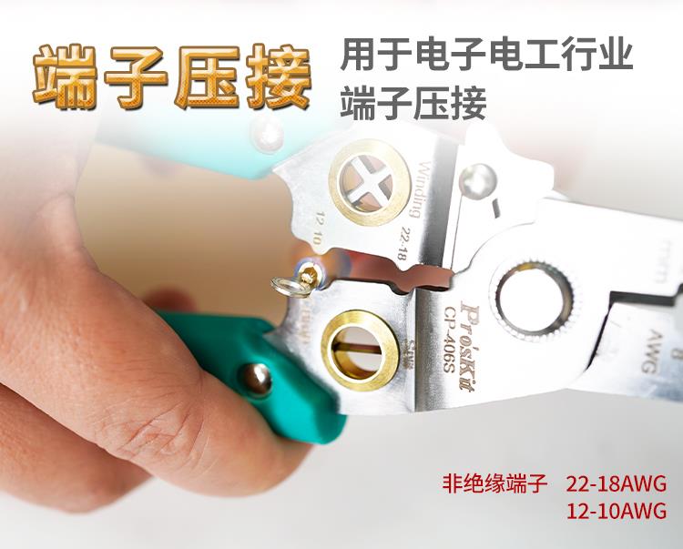 压接功能适配非绝缘端子,范围为22-18 AWG及12-10 AWG,压接牢固可靠