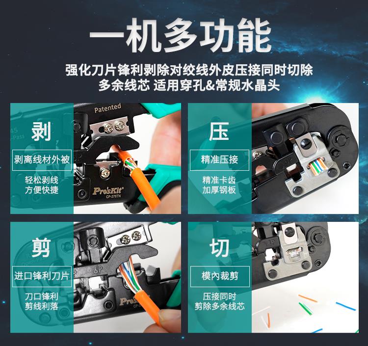 宝工4P/6P/8P/RJ45穿孔式 6合1网络棘轮压接钳CP-376TN