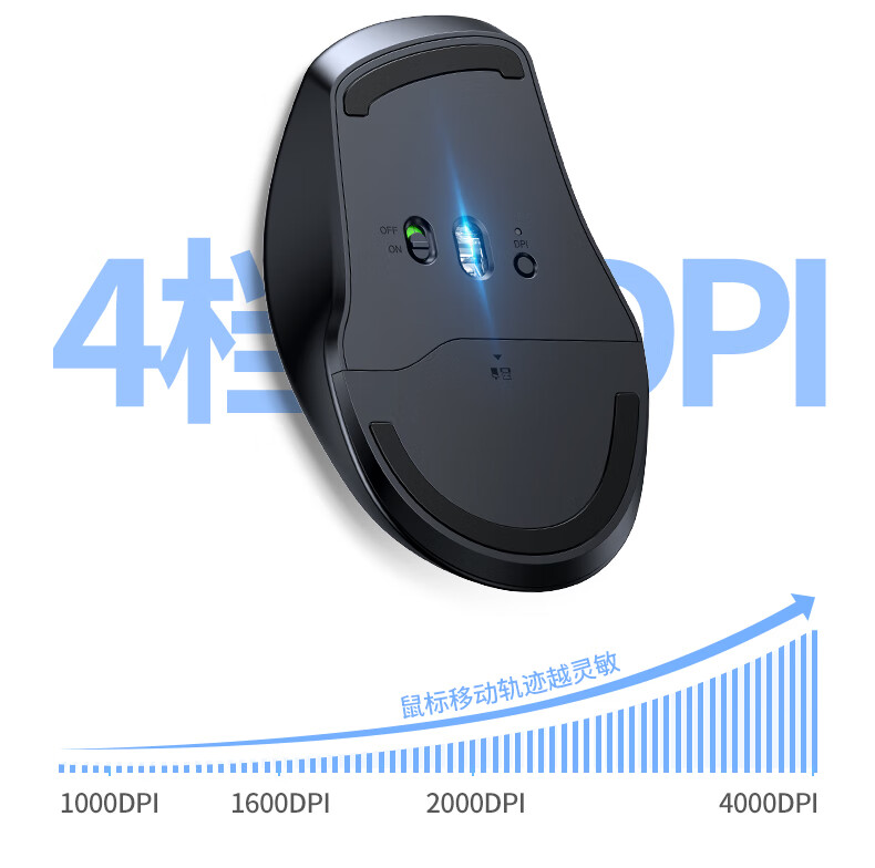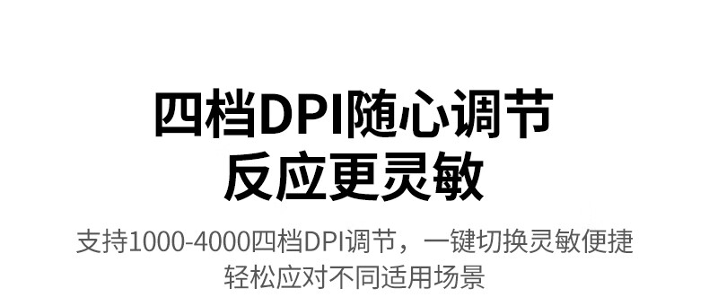 四档DPI调节:1000/1600/2000/4000DPI一键切换,适配不同屏幕分辨率与使用场景