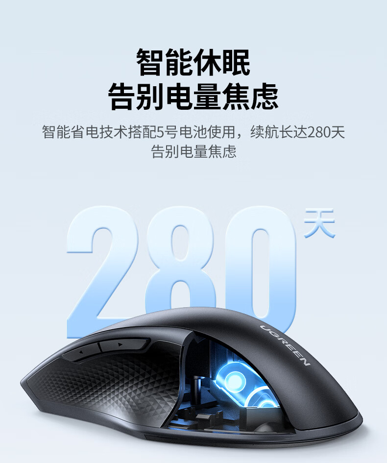 长续航:智能休眠技术搭配5号电池,续航可达280天,减少电池更换频率