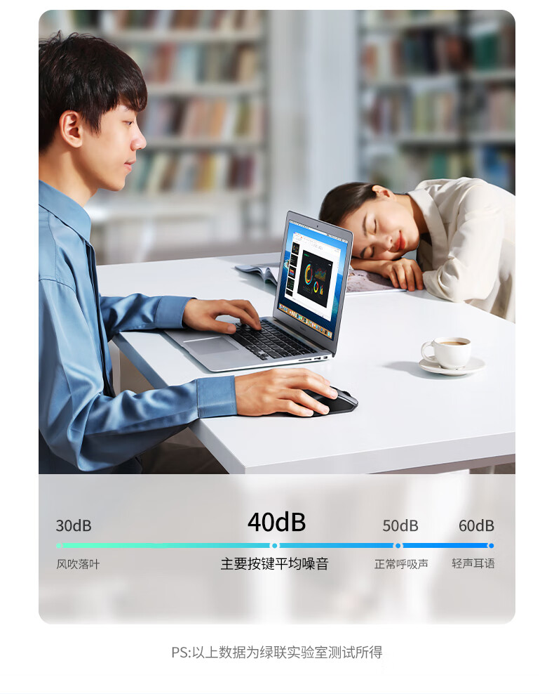 轻音设计:按键和滚轮平均噪音低至40dB,安静不打扰他人