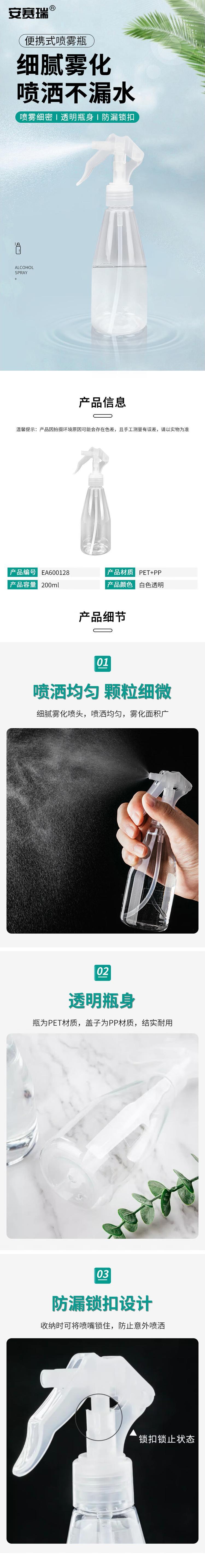 安赛瑞 便携喷雾瓶 手压式小喷壶喷雾器透明塑料瓶 200ml