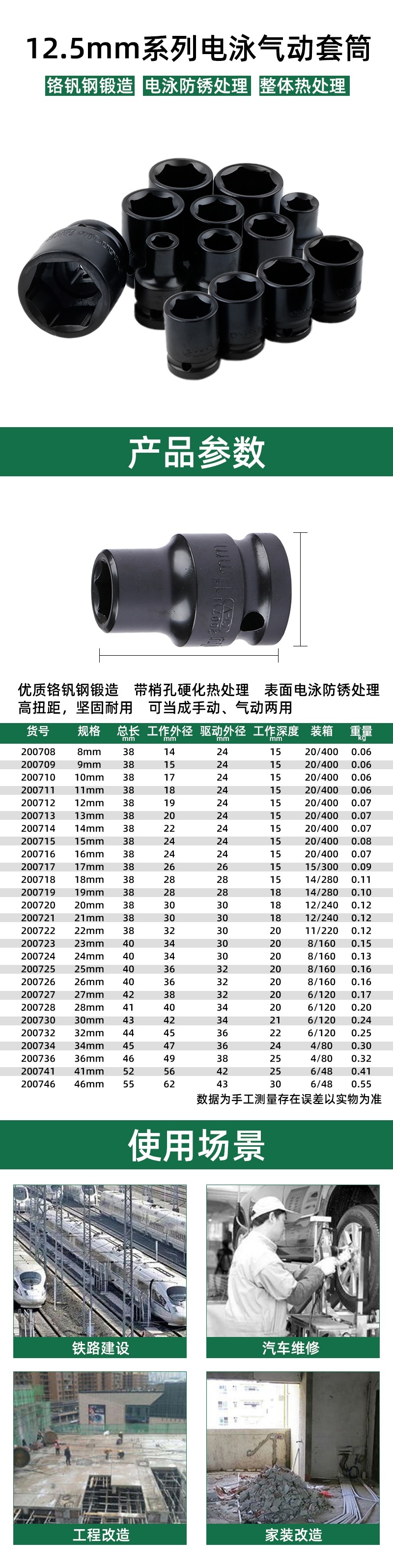 长鹿 12.5mm系列电泳风动6角套筒(Cr-V)17mm 200717