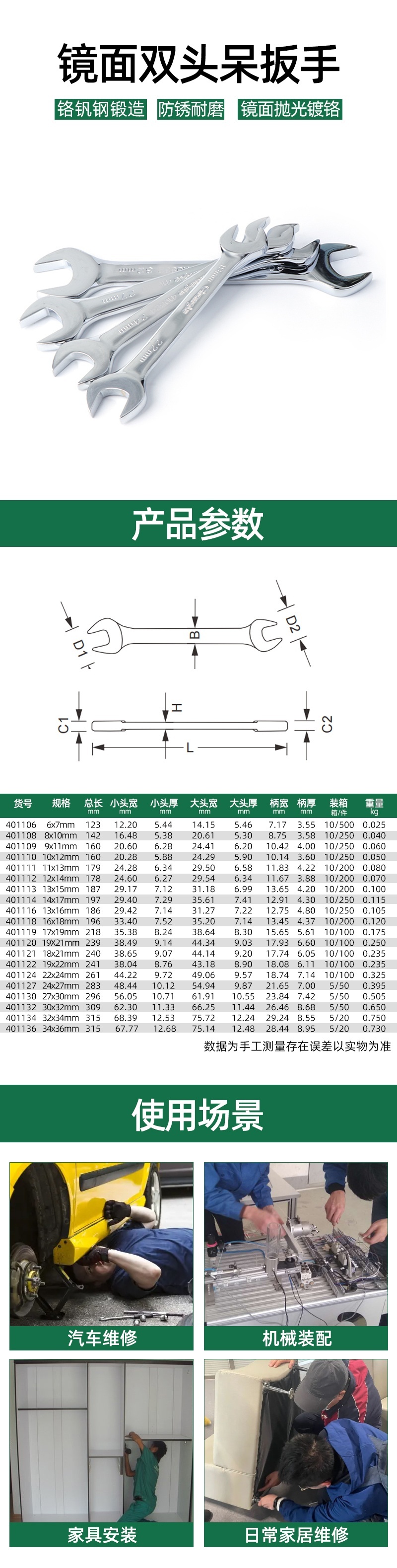 长鹿 镜面双头呆扳手(Cr-V)19x22 401122 1把
