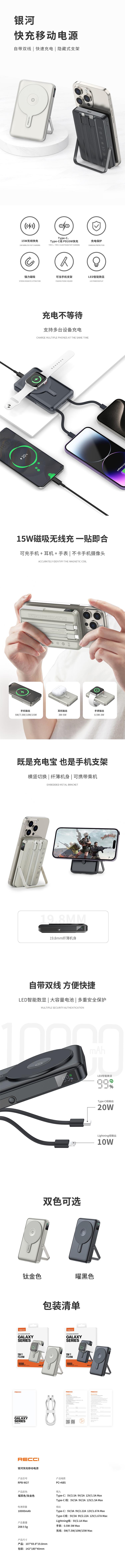 RECCI RPB-W27(3C)银河快充移动电源钛金色