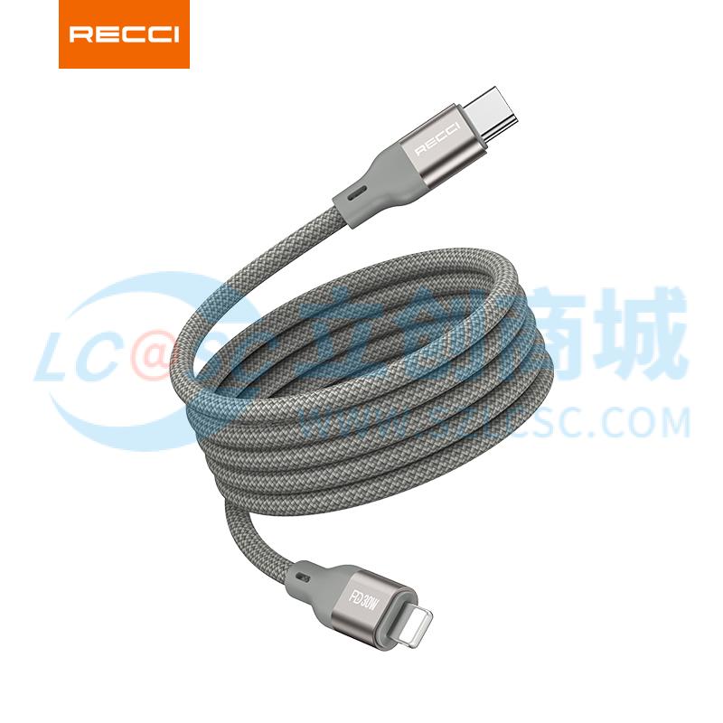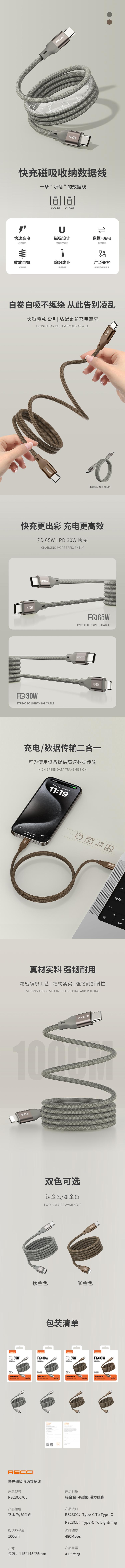 RECCI 苹果PD 30W快充磁吸收纳数据线RS23CL钛金色