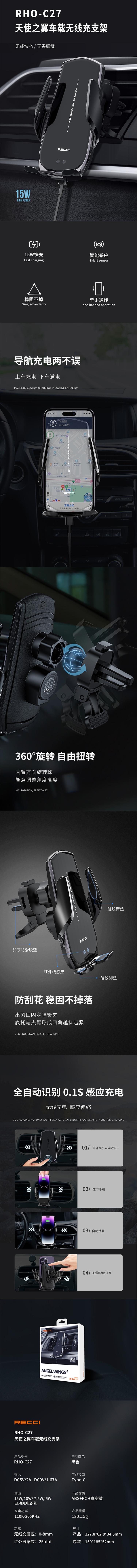 RECCI 天使之翼车载无线充支架RHO-C27黑色