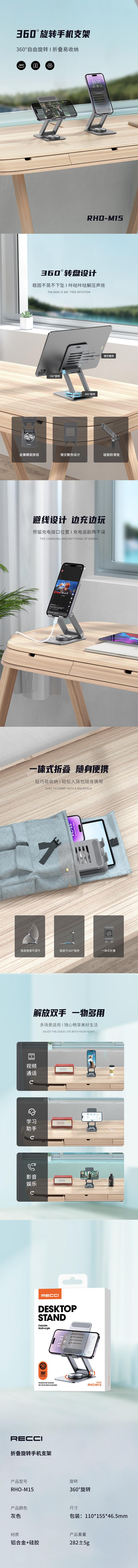 RECCI 折叠旋转手机支架RHO-M15灰色
