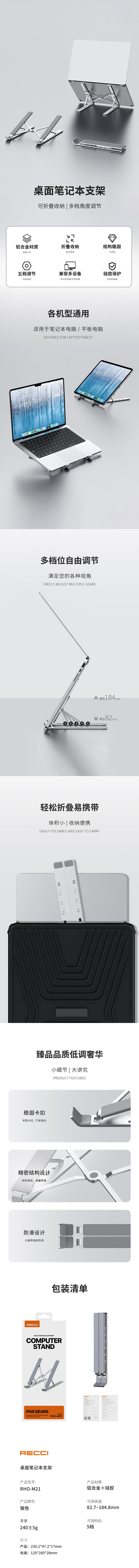 材质:采用铝合金+硅胶材质,兼具坚固性与防滑保护,不易变形且能有效保护设备底部